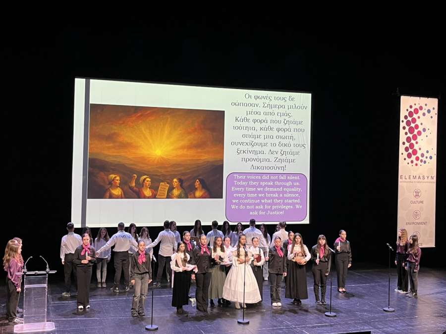 Μέσα από τους μονολόγους πέντε γυναικείων μορφών, οι μαθητές μας ζωντάνεψαν τις αγωνίες της μάνας, της μαθήτριας, της καλλιτέχνιδας, της αγρότισσας και της ράφτρας, και ανέδειξαν τις αγωνίες και τα όνειρα γυναικών που η ιστορία συχνά άφησε στο περιθώριο. Η παράσταση κορυφώθηκε με την εμφάνιση της Olympe de Gouges, η οποία «διεκδίκησε» ξανά, μέσα από τις φωνές των παιδιών, ισότητα και δικαιοσύνη.